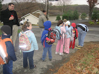 Walking to the bus stop, So many of my little ones...have grown and left for school in the same way Kathryn is going in this picture. I now have 7 children that have graduated from HS. It really proves how quickly 12 1/2 years pass by. When we got to WV we had 9 children, the oldest was 18! Ghee...time flies when you are having fun!